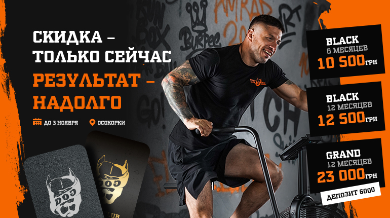 Кто-то ждет понедельника, кто-то ждет Нового года. А мы в Sport Club DOG на Теремках просто берем и действуем. До 29 ноября у тебя есть шанс приобрести клубную карту по безумным ценам: Black на 12 месяцев — 6500 грн Grey на 12 месяцев — 5000 грн Выгодно? Еще бы! Но это не только удачное финансовое решение! Это твой пропуск в […]